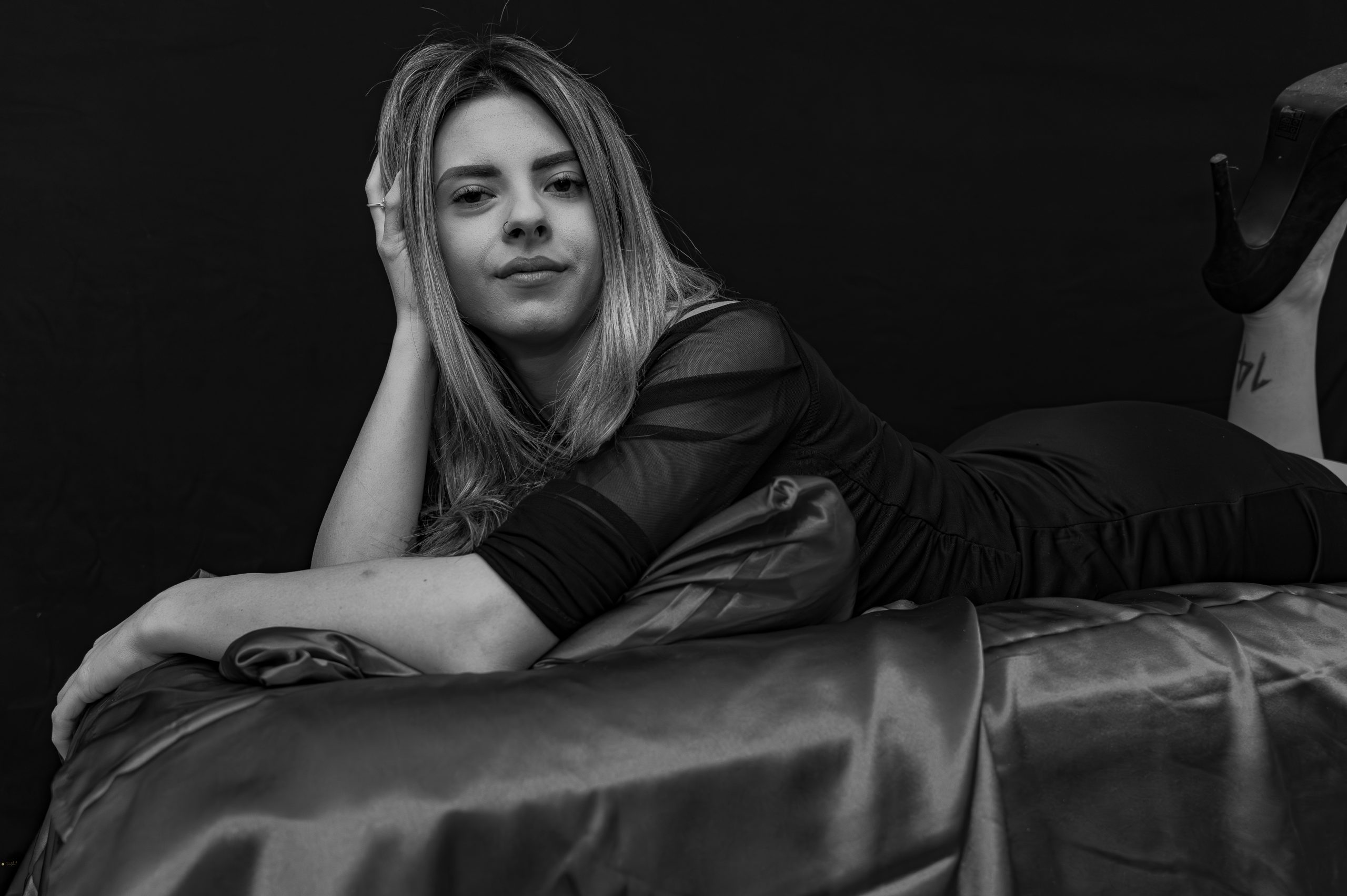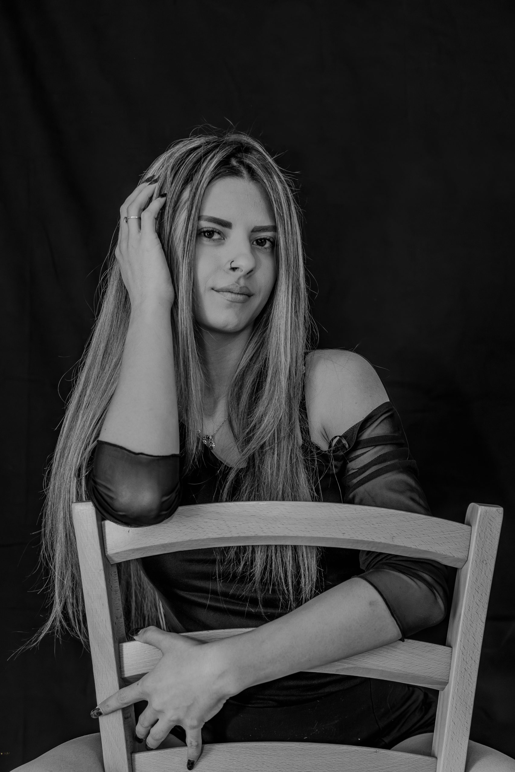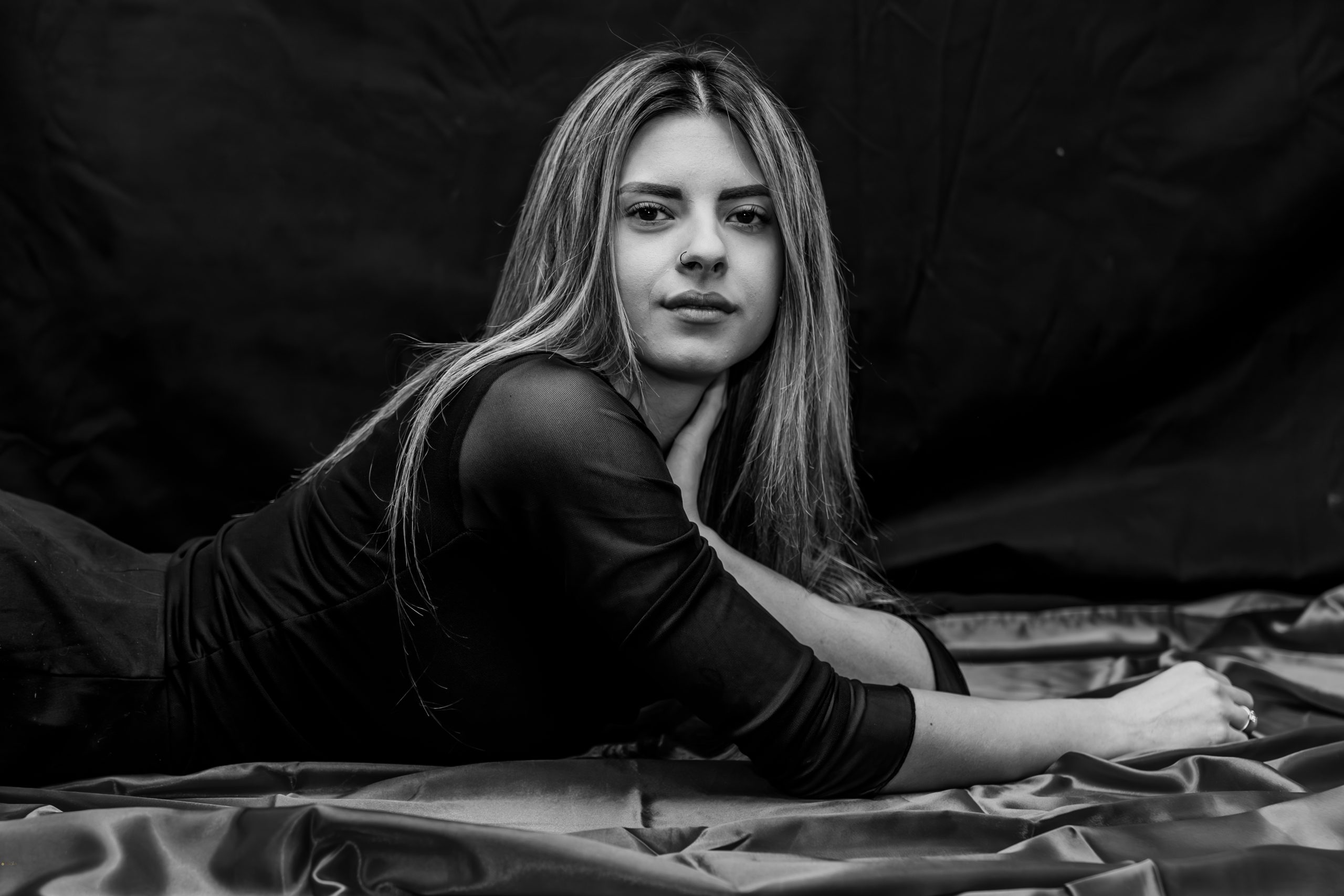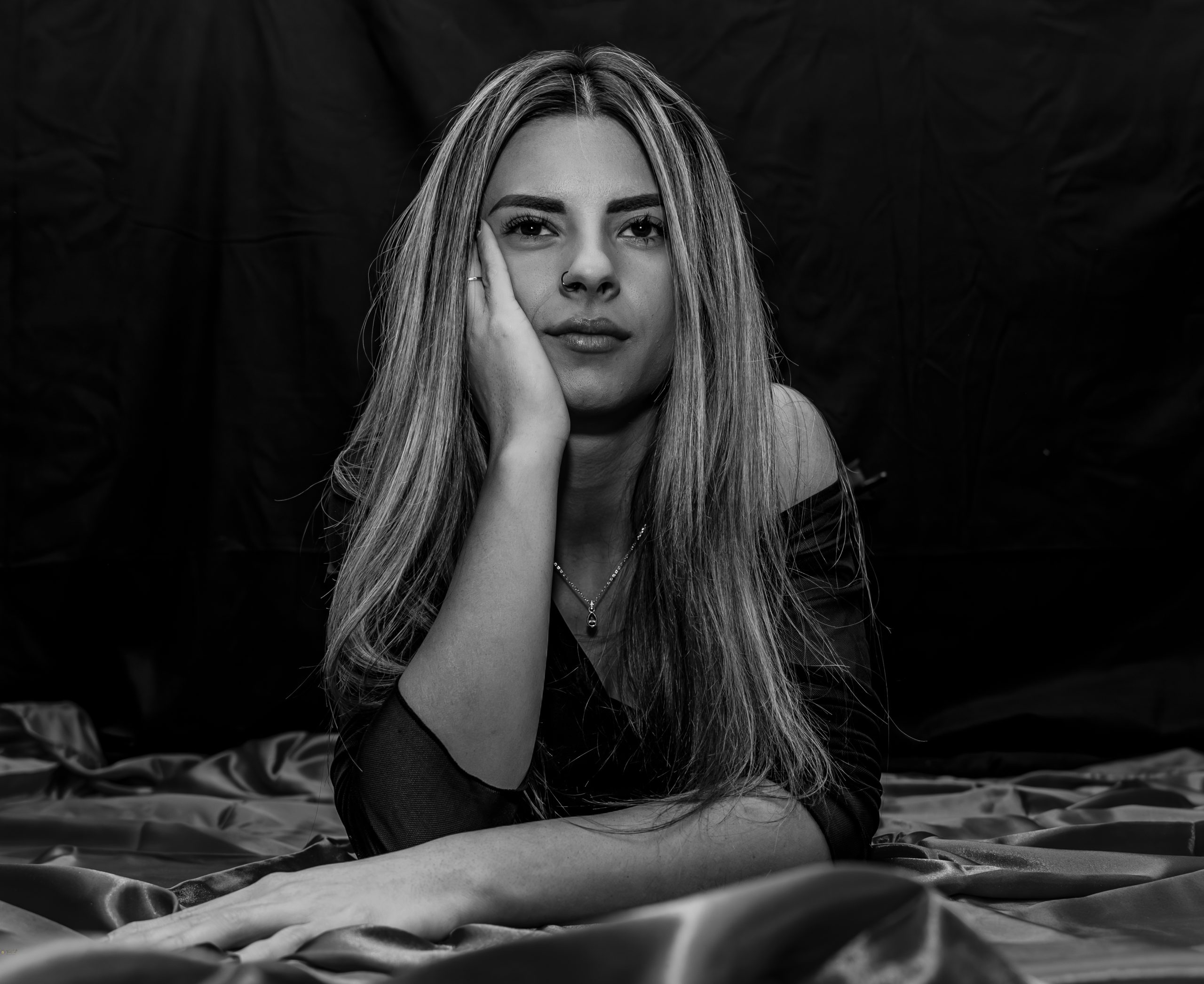 Elegant studio portrait highlighting confidence, femininity, and refined sensuality through light, pose, and minimal styling